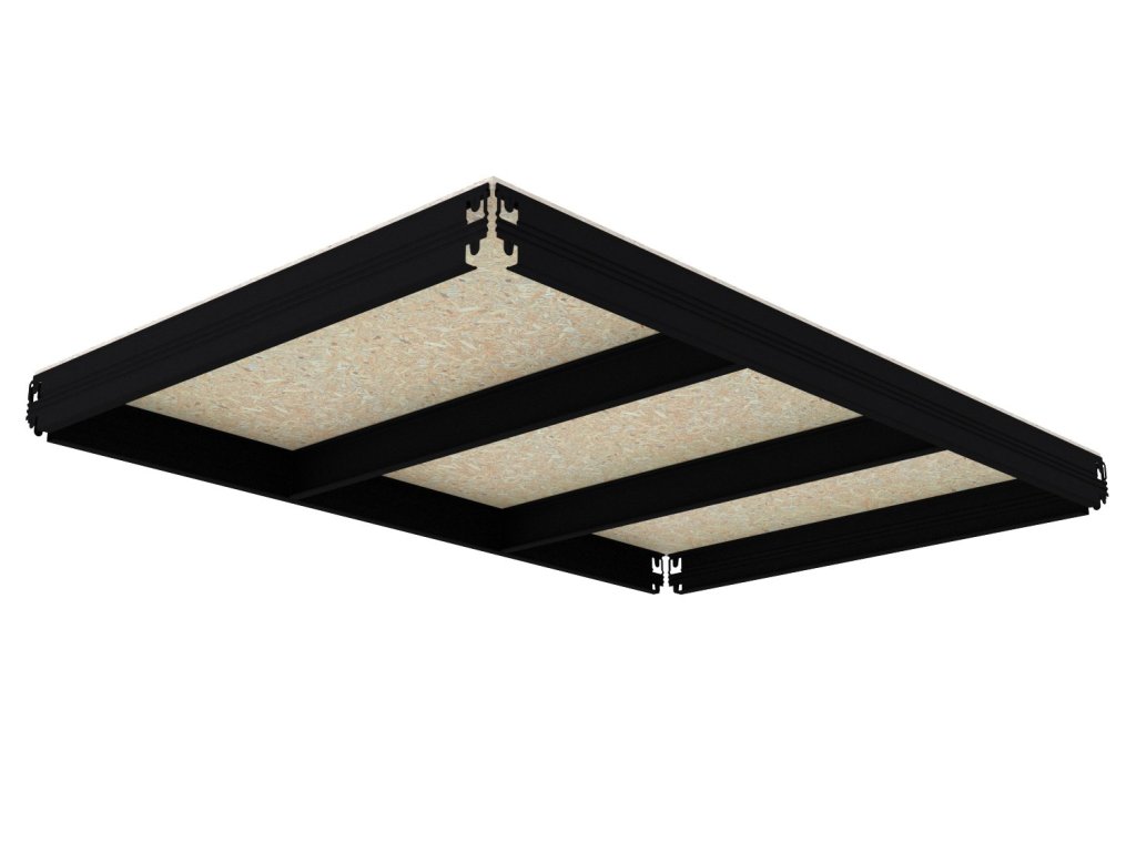 - Zestaw zawiera jeden kompletny poziom (półkę), zgodnie z pierwszym zdjęciem w galerii powyżej: komplet belek nośnych, poprzeczki oraz płytę OSB 10 mm. Wszystko, co niezbędne do sprawnej rozbudowy regału.