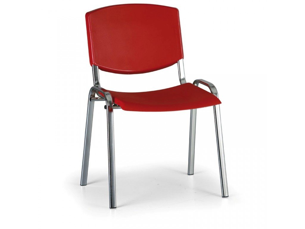 Krzesło konferencyjne plastikowe, czerwone Biedrax Z8994cv, chromowana podstawa