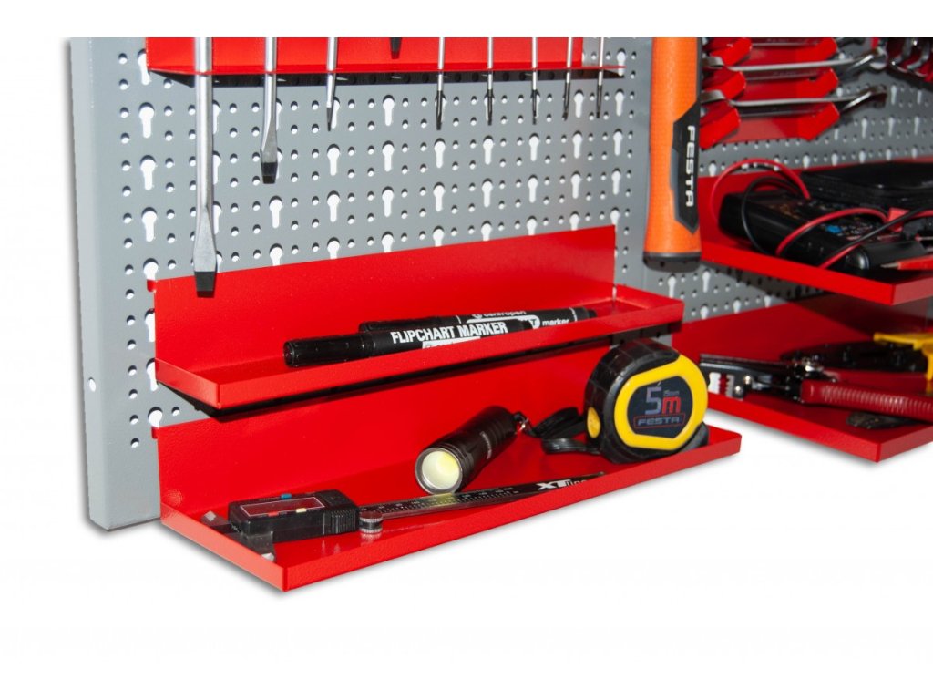 Półka równa 90 st. do panelu perforowanego - 34x6 cm - NP5830 czerwona