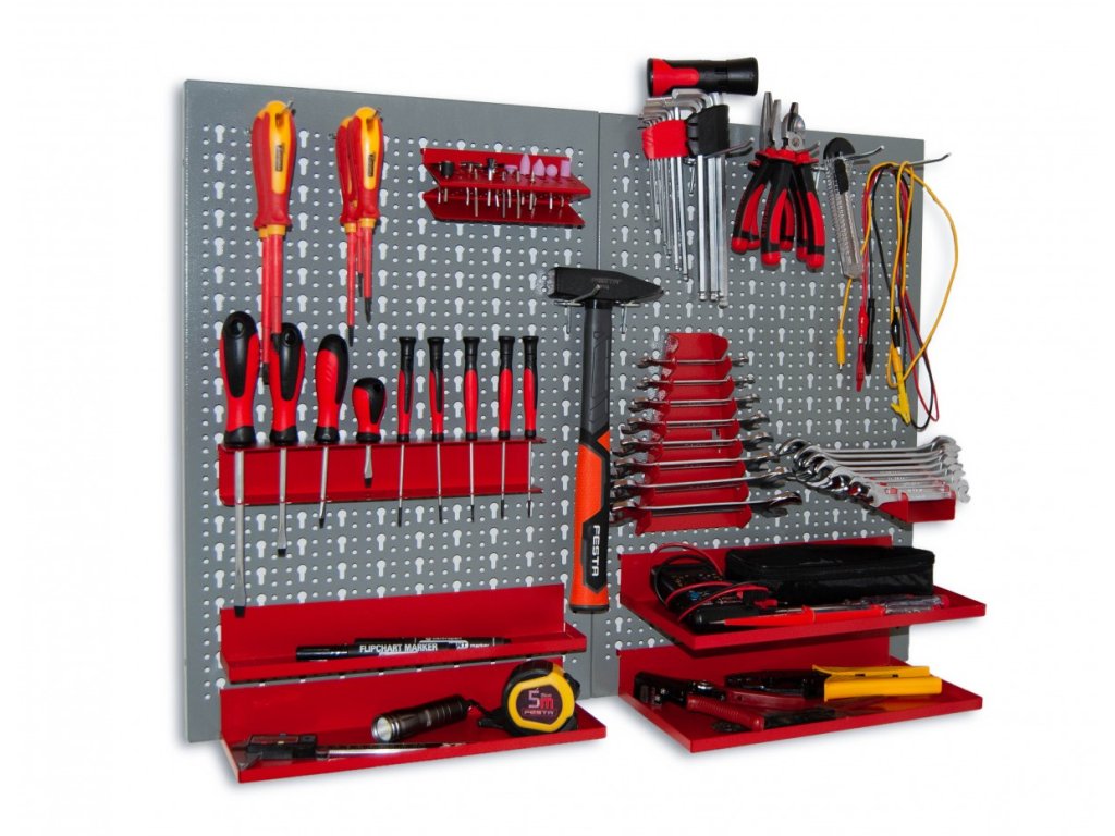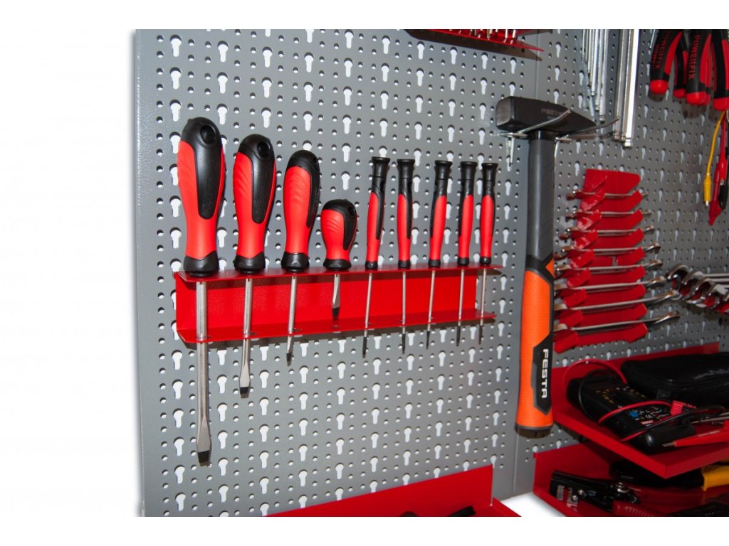 Uchwyt 9 sztuk śrubokrętów na panele ścienne - NP5871 czerwony