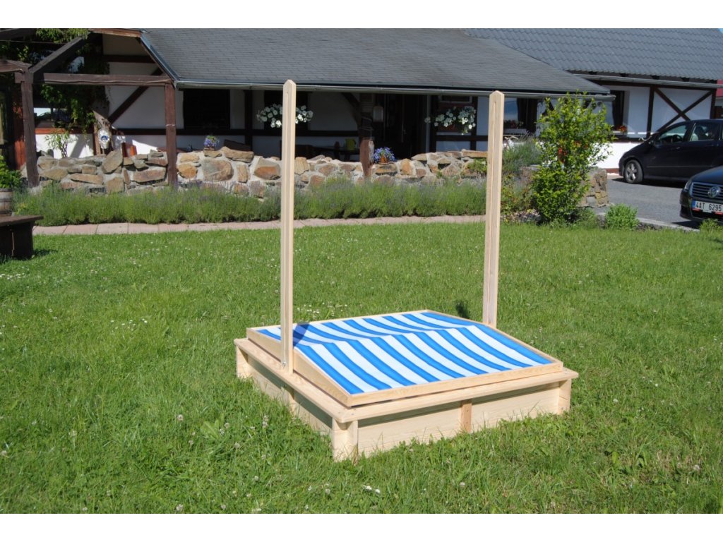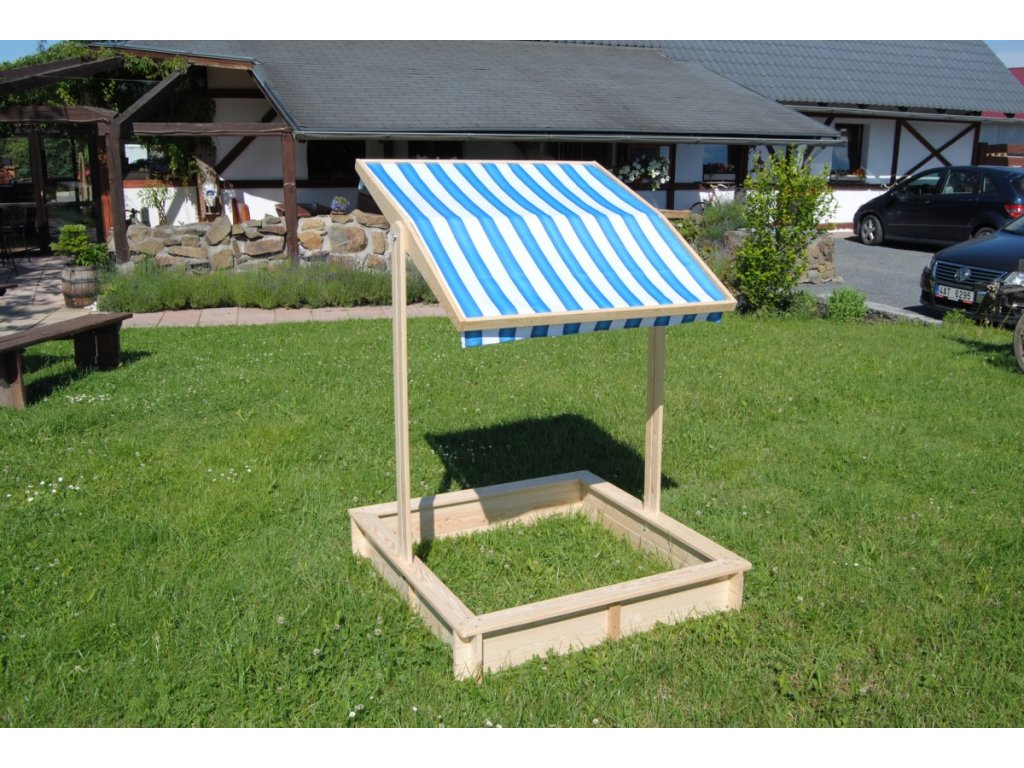 - piaskownica zawiera biało-niebieski daszek z materiału wodoodpornego wysokiej jakości