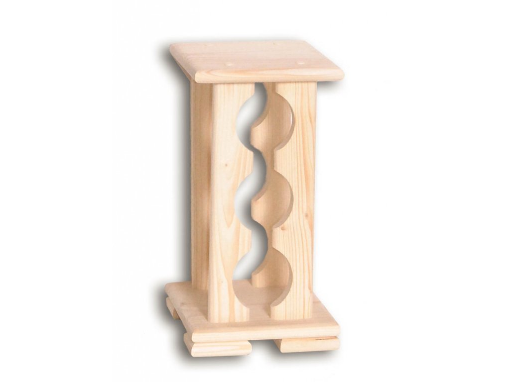 Regał (stojak) na wino jest wykonany z drewna świerkowego, ma naturalny wygląd, bez lakierowania. Te oto regały na wino są wyprodukowane dla zwykłych rodzajów butelek o średnicy 74 aż 76 mm, wysokości od 290 do 320 mm i objętości 0,7 aż 0,75 l.