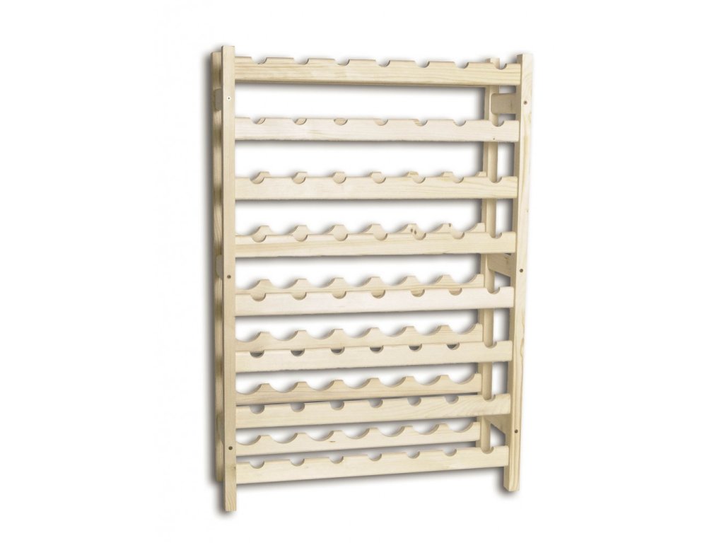 Regał (stojak) na wino jest wykonany z drewna świerkowego, ma naturalny wygląd, bez lakierowania. Te oto regały na wino są wyprodukowane dla zwykłych rodzajów butelek o średnicy 74 aż 76 mm, wysokości od 290 do 320 mm i objętości 0,7 aż 0,75 l.