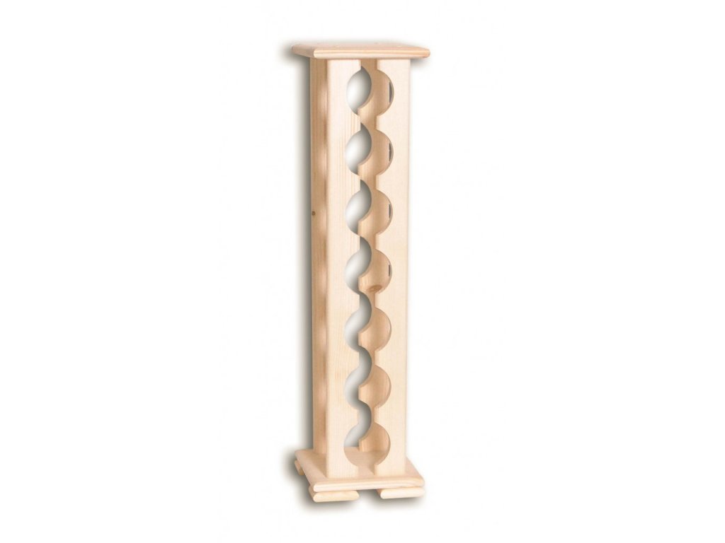 Regał (stojak) na wino jest wykonany z drewna świerkowego, ma naturalny wygląd, bez lakierowania. Te oto regały na wino są wyprodukowane dla zwykłych rodzajów butelek o średnicy 74 aż 76 mm, wysokości od 290 do 320 mm i objętości 0,7 aż 0,75 l.