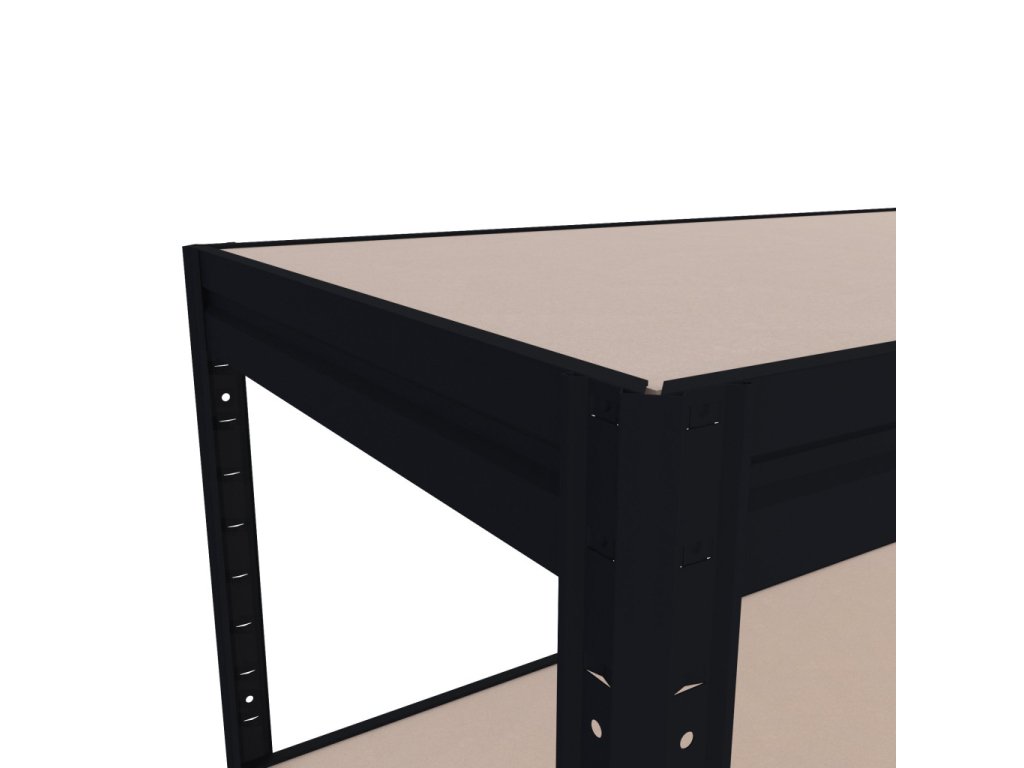 Duży regał bezśrubowy (wciskany) z ekologicznymi półkami z płyt MDF, produkowanymi pod wysokim ciśnieniem bez dodatku klejów. System bezśrubowy (wciskany) zapewnia wyjątkową stabilność oraz błyskawiczny montaż – belki wystarczy wsunąć w słupki i zabezpieczyć lekkim uderzeniem. Brak śrub gwarantuje maksymalną sztywność konstrukcji. Uwaga: Półki MDF nadają się wyłącznie do suchych pomieszczeń. Stabilny i przestronny regał, idealny do przechowywania dużych i wysokich ładunków, wzmocnienia pod każdą półką zapewniają sztywność konstrukcji i zapobiegają ich uginaniu się.