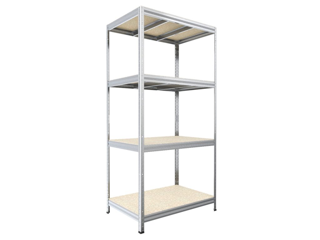 Regał bezśrubowy (wciskany) Biedrax 35 x 120 x 180 cm, ocynk, 4 półki OSB 10 mm, nośność 200 kg na półkę