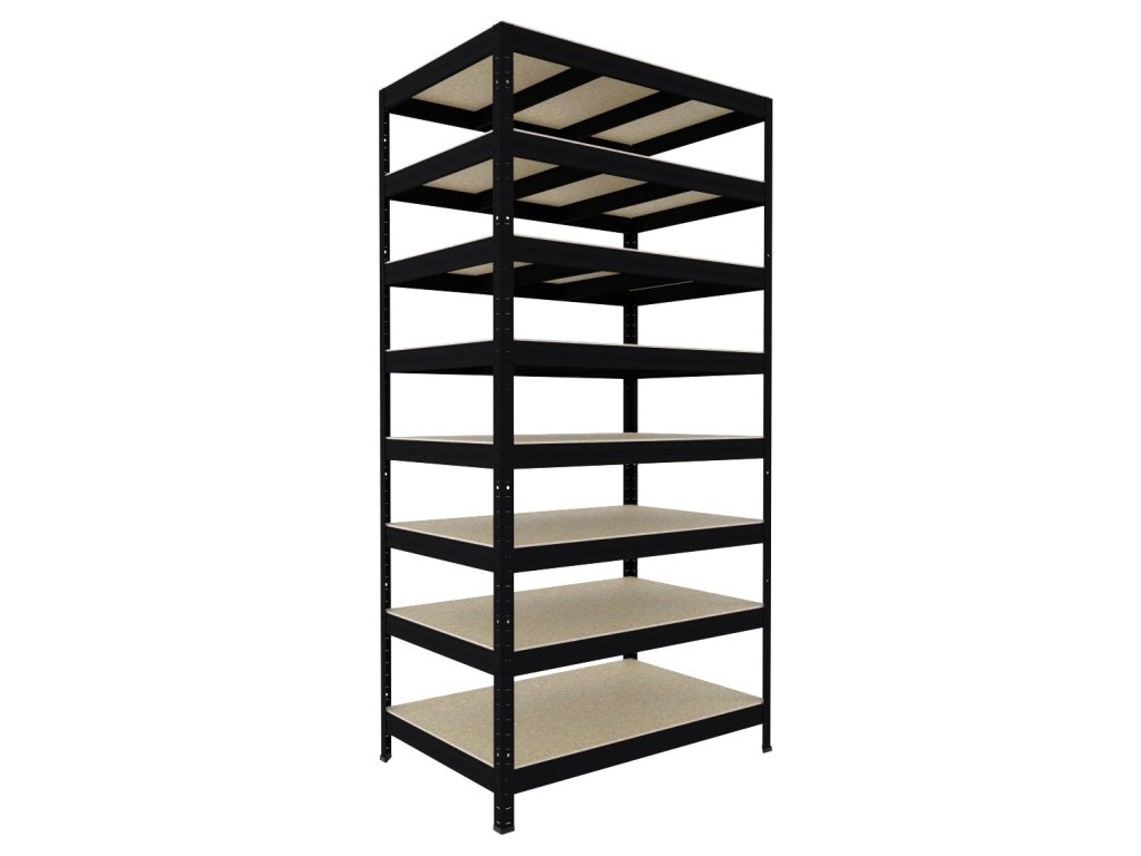 Regał bezśrubowy (wciskany) Biedrax 35 x 120 x 210 cm, czarny, 8 półek OSB 10 mm, nośność 200 kg na półkę
