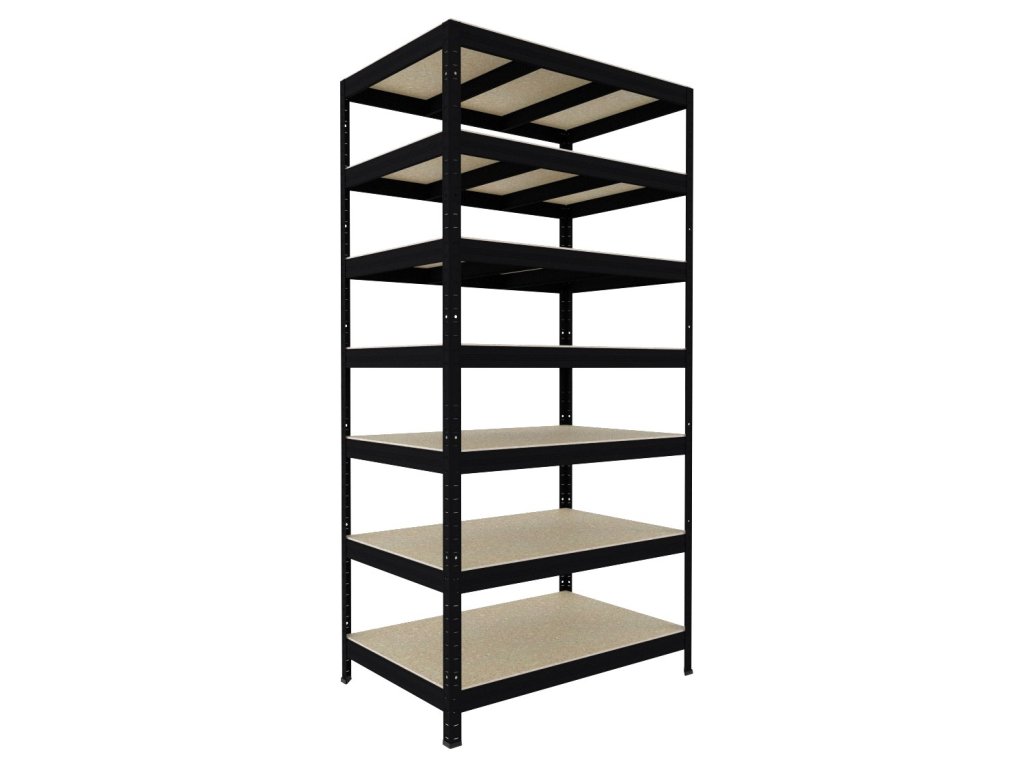 Regał bezśrubowy (wciskany) Biedrax 35 x 120 x 240 cm, czarny, 7 półek OSB 10 mm, nośność 200 kg na półkę