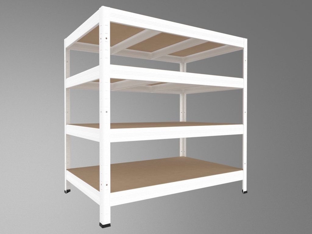 Regał bezśrubowy (wciskany) Biedrax 35 x 120 x 120 cm, biały, 4 półki MDF, nośność 200 kg na półkę