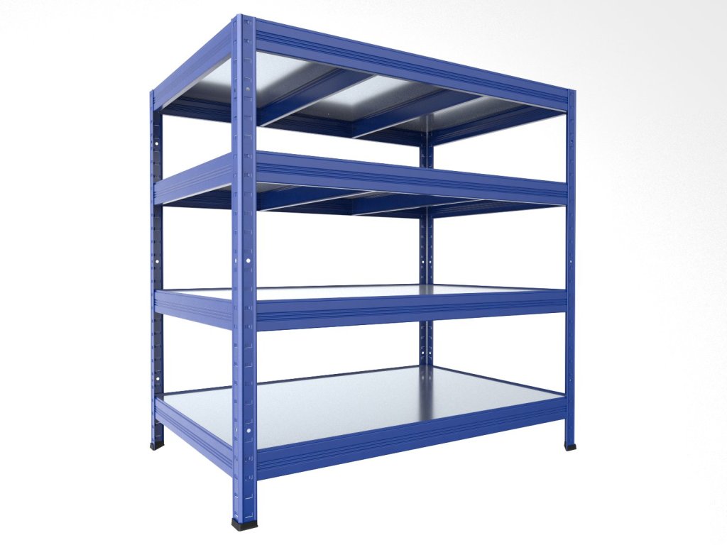 Regał bezśrubowy (wciskany) Biedrax 35 x 120 x 120 cm, niebieski, 4 półki metalowe ocynk, nośność 150 kg na półkę