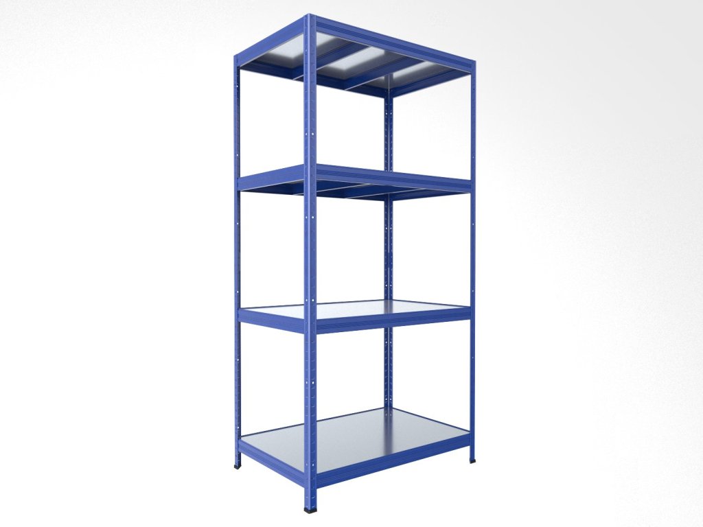Regał bezśrubowy (wciskany) Biedrax 35 x 120 x 180 cm, niebieski, 4 półki metalowe ocynk, nośność 150 kg na półkę