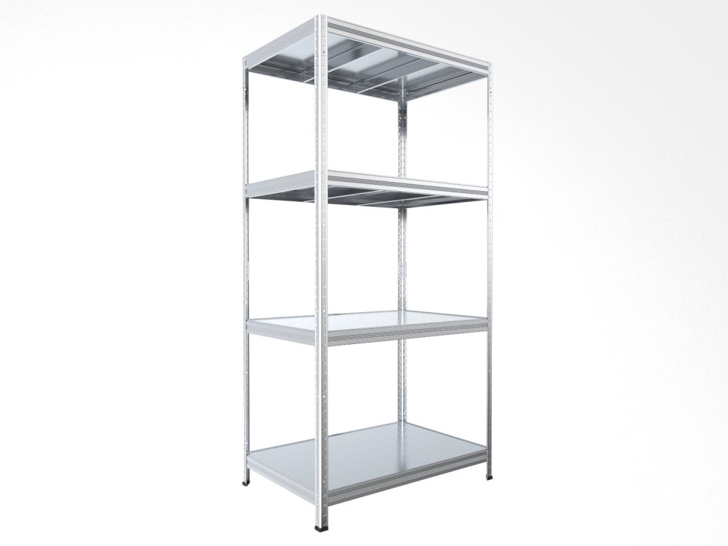 Regał bezśrubowy (wciskany) z półkami z blachy ocynkowanej, które są trwałe, zmywalne i nadają się również do wilgotnych środowisk, takich jak piwnice, garaże czy szklarnie. Unikalny system bezśrubowy gwarantuje szybki montaż i wysoką stabilność. Półki są dodatkowo sprytnie osadzone w belkach, tworząc praktyczną 4-milimetrową krawędź, która zapobiega wypadaniu przechowywanych przedmiotów.