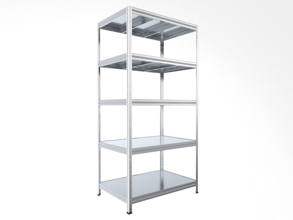 Regał bezśrubowy (wciskany) z półkami z blachy ocynkowanej, które są trwałe, zmywalne i nadają się również do wilgotnych środowisk, takich jak piwnice, garaże czy szklarnie. Unikalny system bezśrubowy gwarantuje szybki montaż i wysoką stabilność. Półki są dodatkowo sprytnie osadzone w belkach, tworząc praktyczną 4-milimetrową krawędź, która zapobiega wypadaniu przechowywanych przedmiotów.