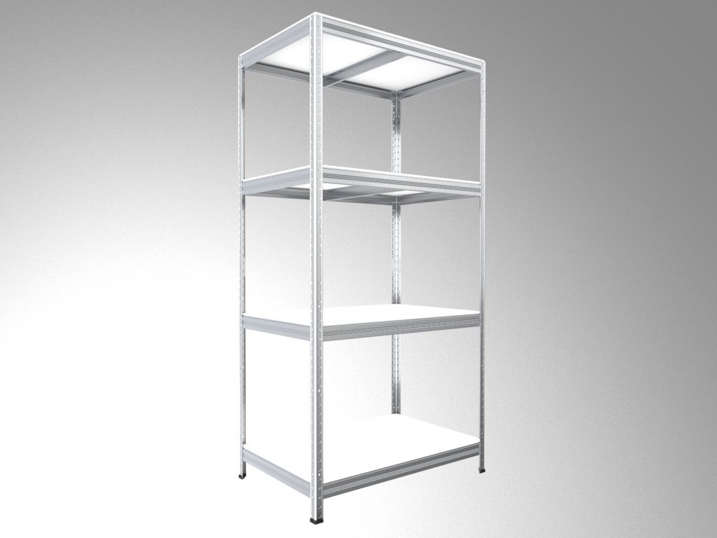 Regał bezśrubowy (wciskany) Biedrax 35 x 60 x 180 cm, ocynk, 4 półki białe laminowane 12mm, nośność 200 kg na półkę
