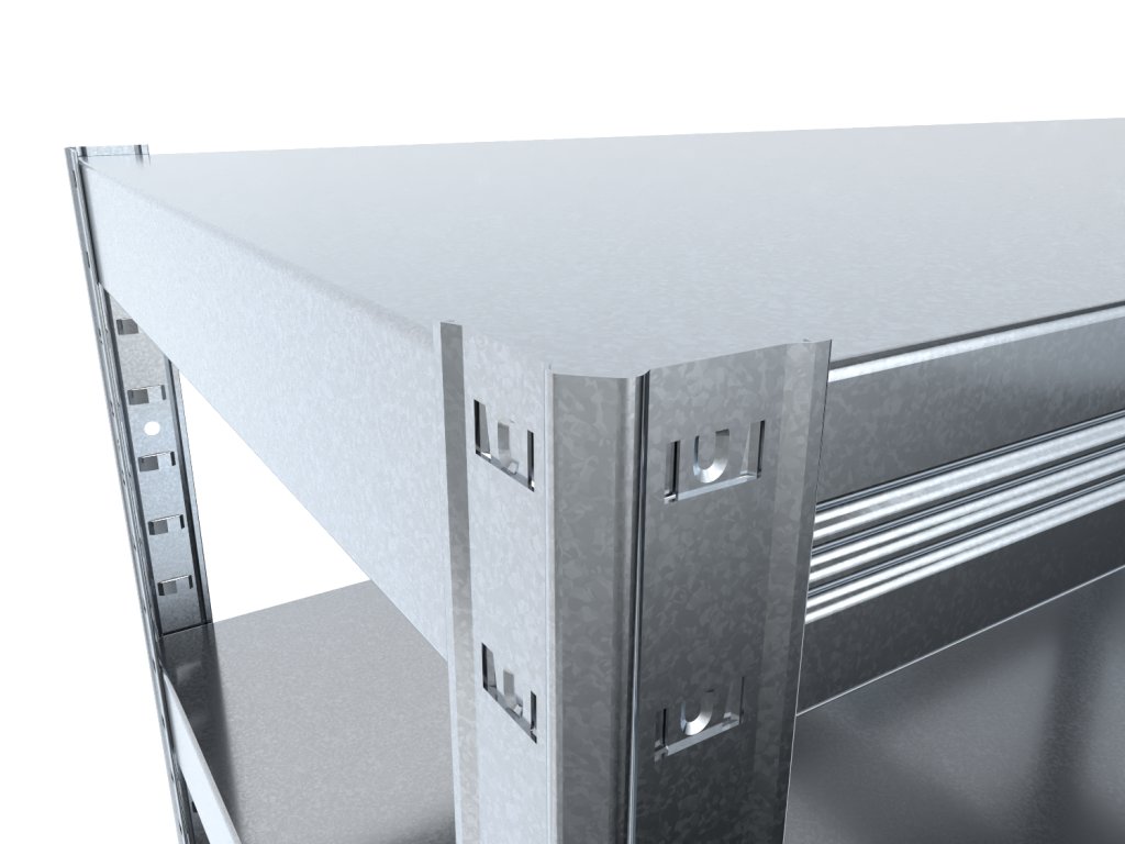 Regał metalowy bezśrubowy (zatrzaskowy) z półkami metalowymi można myć zwykłymi środkami czyszczącymi. Regał metalowy bezśrubowy (zatrzaskowy) z półkami metalowymi może być używany również w wilgotnym środowisku. Montaż regału zajmie Ci kilka minut. Półki wsuną się do słupków i stuknięciami dosuną na miejsce. Ten oto rodzaj regałów całkowicie metalowych z nośnością 100 kg na półkę jest najtańszym z naszej oferty regałów całkowicie metalowych. Ten oto typ regałów z nośnością 100 kg na półkę nadaje się do magazynowania np. w piwnicy, spiżarni, garażu czy archiwum.