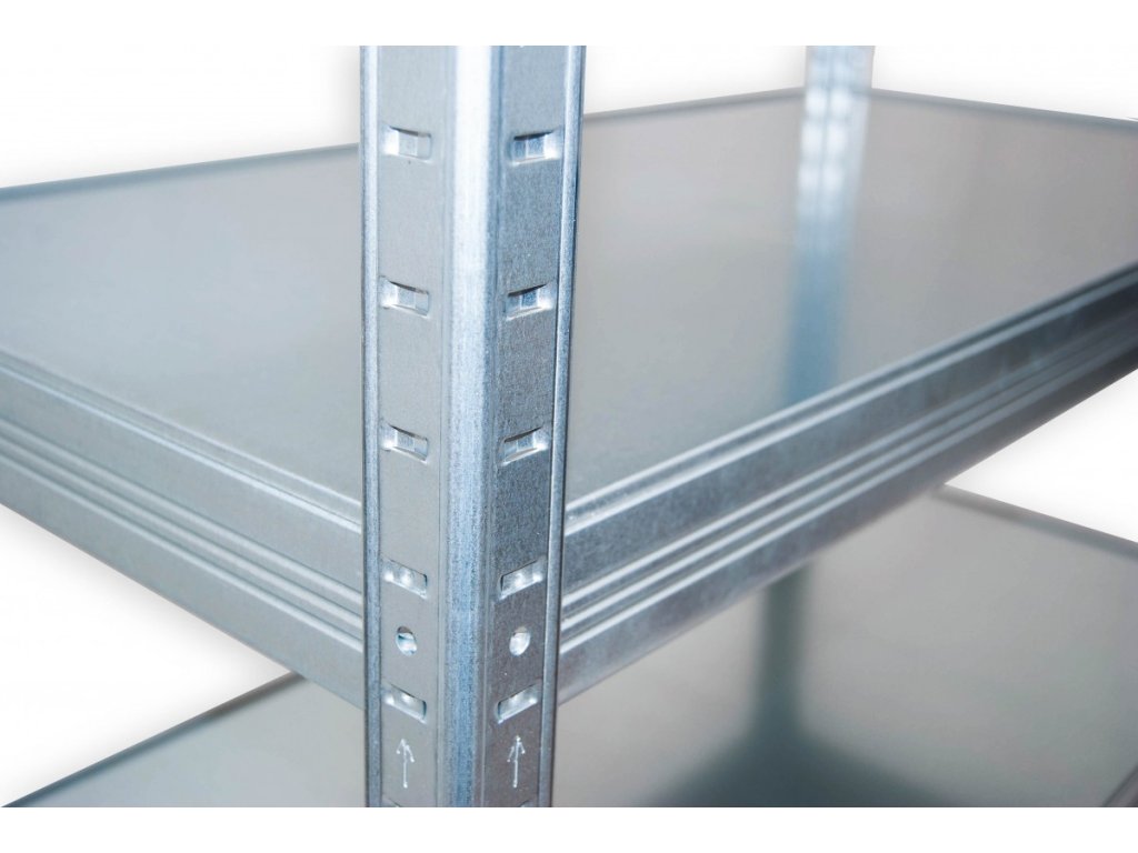 Regał metalowy domowy z półkami metalowymi ocynkowanymi można myć zwykłymi środkami czyszczącymi. Regał metalowy domowy z półkami metalowymi może być używany również w wilgotnym środowisku. Montaż regału zajmie Ci kilka minut. Półki wsuną się do słupków i stuknięciami dosuną na miejsce. Te oto regały metalowe ocynkowane lub malowane proszkowo zawsze mają półki ocynkowane. Ta seria regałów metalowych z półkami metalowymi z nośnością 150 kg na półkę idealnie nadaje się również do pomieszczeń wilgotnych, takich jak piwnica, garaż, ogród, szklarnia czy szopa na narzędzia. Zaletą tego rodzaju regałów jest półka ocynkowana, która jest lekko wpuszczona w belkę - tworzy to wokół całej półki krawędź o wysokości około 4 mm, która zapobiega wypadaniu przedmiotów poza półkę. Kolejną zaletą jest możliwość prostego wyjęcia półek z blachy ocynkowanej i umycia ich bez demontażu całego regału.