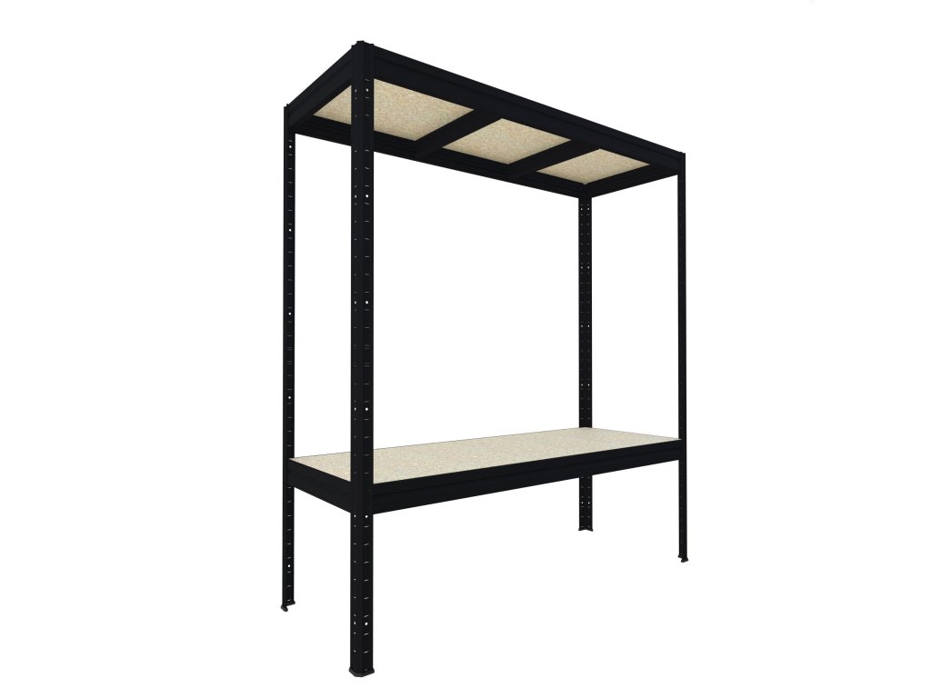 Duży regał do magazynu Biedrax 60 x 200 x 177 cm, 2 półki - czarny/płyta wiórowa JSD 10 mm, 350 kg/półkę