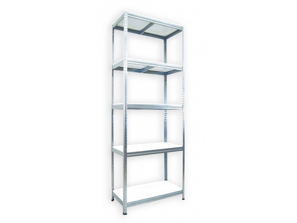 Regał metalowy do magazynu Biedrax 50 x 90 x 240 cm, ocynkowany - 5 półek białych laminowanych 12mm