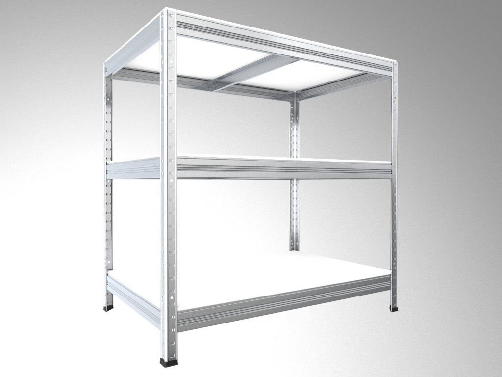 Regały metalowe z białymi półkami z laminowanej płyty wiórowej 12 mm, krawędzie ABS z wszystkich stron. Półki regału są odporniejsze przeciw wilgotności. Regały można utrzymywać wilgotną szmatą i na końcu półki osuszyć. Prosty i szybki system montażu, wsuniesz belki do słupków i lekkimi stuknięciami młotkiem dotrzasną się do końca. Wysoka stabilność regału, szybkość montażu - bez śrub! Regały metalowe można umieścić w spiżarni, komorze, piwnicy.