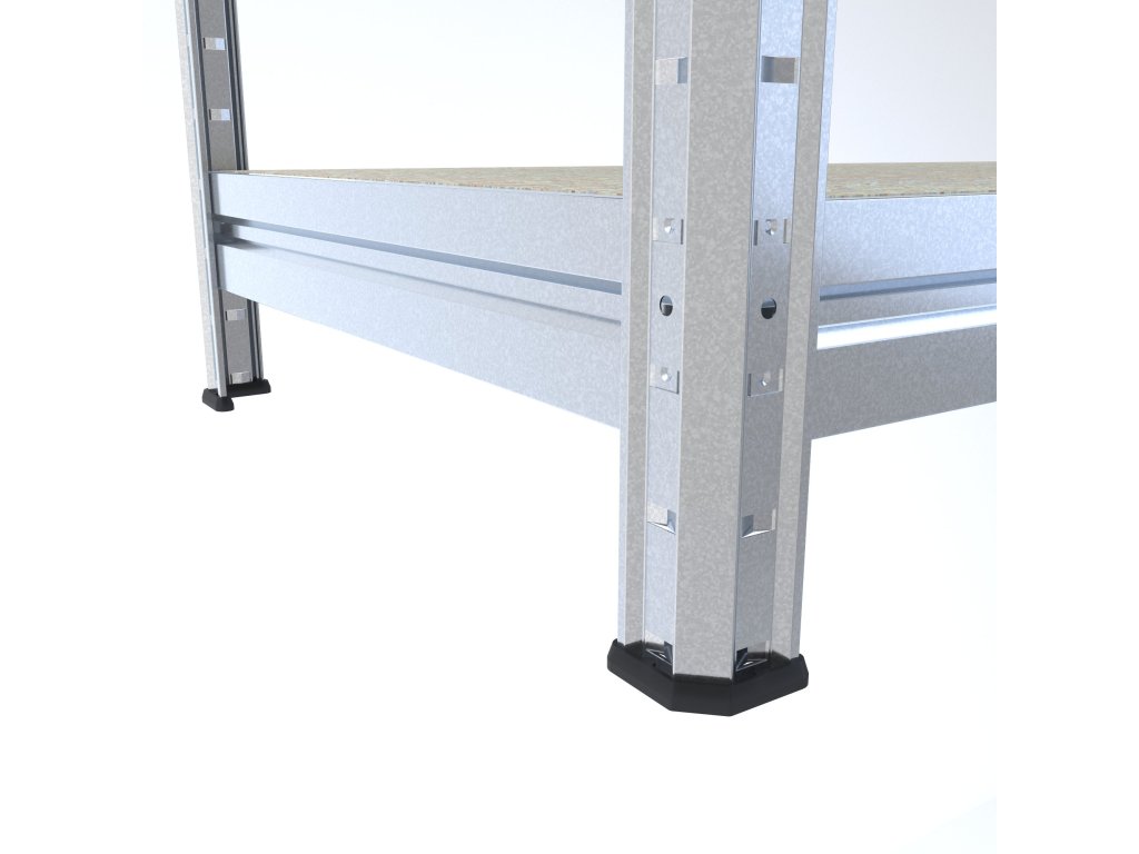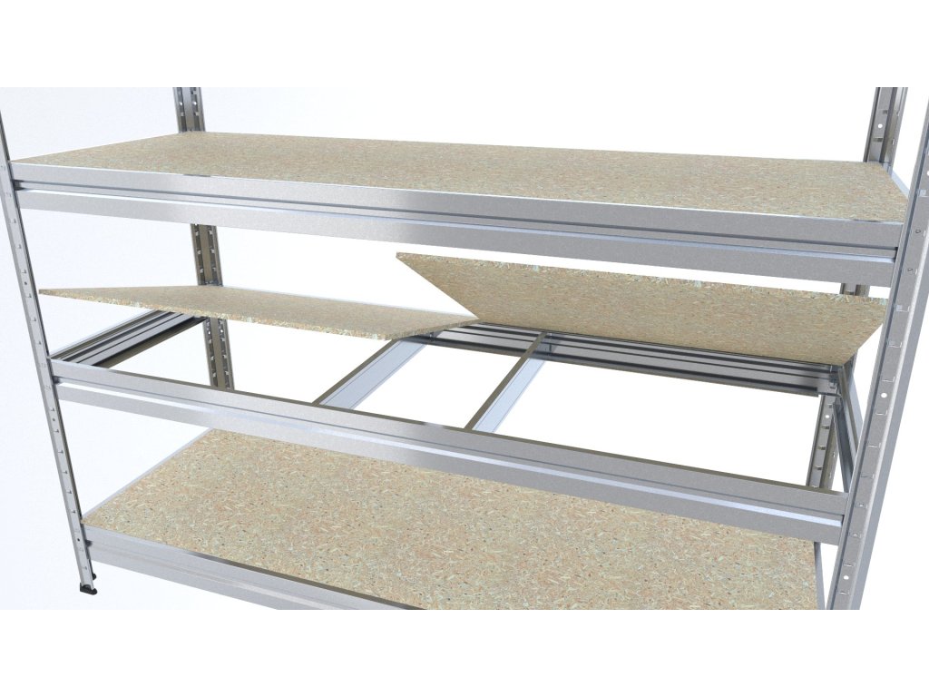 Duży regał do pomieszczenia technicznego Biedrax, konstrukcja metalowa, z półkami wykonanymi z płyty wiórowej JSD o grubości 10 mm. Regały z półkami z płyty wiórowej JSD nadają się również do pomieszczeń wilgotnych. Przestrzeń wilgotna to na przykład szopy, pergole, pomieszczenia technicznego itp. Regały z półkami JSD nie są przeznaczone do użytku na zewnątrz, z bezpośrednim narażeniem na opady atmosferyczne. Bardzo prosty system montażu, belki umieszczą się do nóg regału i lekkimi stuknięciami dosuną na miejsce. Gwarantuje to wysoką stabilność regału, ale i szybkość montażu bez śrub! Stabilny i pojemny Duży regał do pomieszczenia technicznego o nośności 300 kg na półkę nadaje się do obszerniejszy i lżejszych ładunków, pod każdą półką znajdują się wzmocnienia zapobiegające wyginaniu się półek.