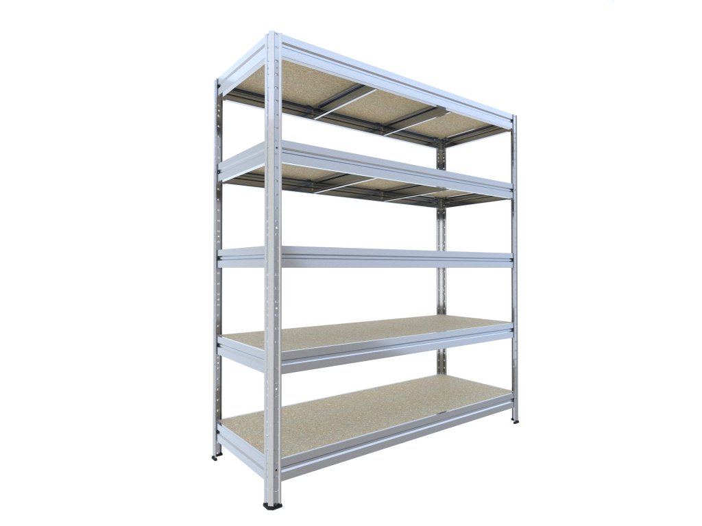 Duży regał do pomieszczenia technicznego Biedrax 60 x 240 x 177 cm, 5 półek - ocynk/płyta wiórowa JSD 10 mm, 300 kg/półkę