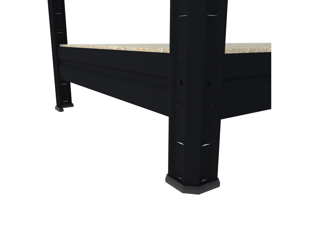 Duży regał do spiżarni Biedrax, konstrukcja metalowa, z półkami wykonanymi z płyty wiórowej JSD o grubości 15 mm. Regały z półkami z płyty wiórowej JSD nadają się również do pomieszczeń wilgotnych. Przestrzeń wilgotna to na przykład szopy, pergole, spiżarni itp. Regały z półkami JSD nie są przeznaczone do użytku na zewnątrz, z bezpośrednim narażeniem na opady atmosferyczne. Bardzo prosty system montażu, belki umieszczą się do nóg regału i lekkimi stuknięciami dosuną na miejsce. Gwarantuje to wysoką stabilność regału, ale i szybkość montażu bez śrub! Stabilny i pojemny Duży regał do spiżarni o nośności 300 kg na półkę nadaje się do obszerniejszy i lżejszych ładunków, pod każdą półką znajdują się wzmocnienia zapobiegające wyginaniu się półek.