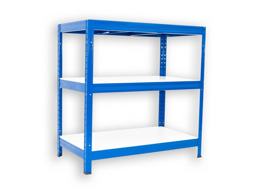 Regał metalowy do spiżarni Biedrax 50 x 120 x 120 cm, niebieski - 3 półki białe laminowane 12mm