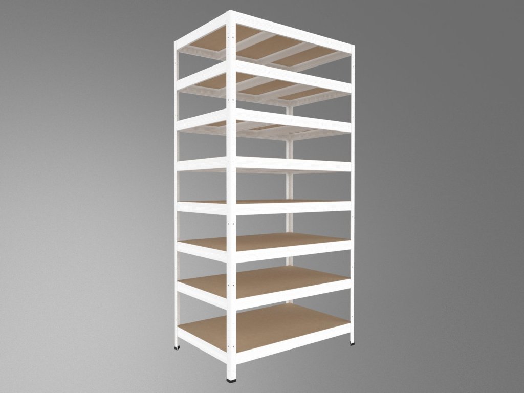 Regał gospodarczy z ekologicznymi półkami z płyt MDF, produkowanymi pod wysokim ciśnieniem bez dodatku klejów. System bezśrubowy (wciskany) zapewnia wyjątkową stabilność oraz błyskawiczny montaż – belki wystarczy wsunąć w słupki i zabezpieczyć lekkim uderzeniem. Brak śrub gwarantuje maksymalną sztywność konstrukcji. Uwaga: Półki MDF nadają się wyłącznie do suchych pomieszczeń.