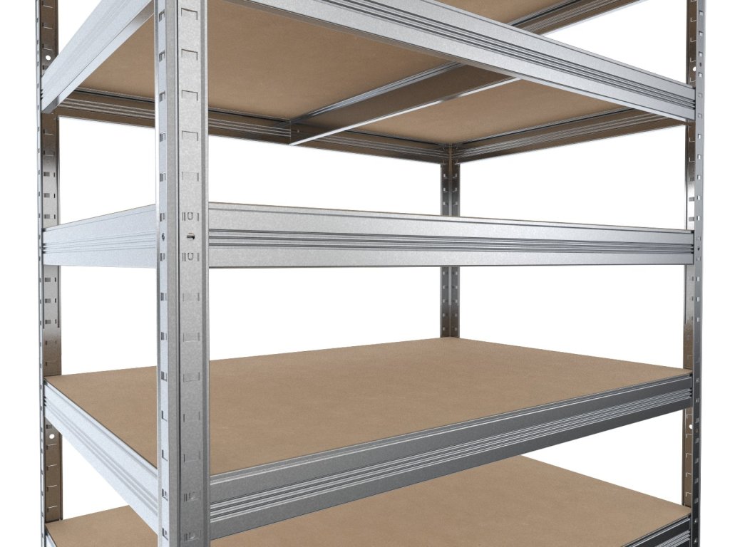 Regał gospodarczy z ekologicznymi półkami z płyt MDF, produkowanymi pod wysokim ciśnieniem bez dodatku klejów. System bezśrubowy (wciskany) zapewnia wyjątkową stabilność oraz błyskawiczny montaż – belki wystarczy wsunąć w słupki i zabezpieczyć lekkim uderzeniem. Brak śrub gwarantuje maksymalną sztywność konstrukcji. Uwaga: Półki MDF nadają się wyłącznie do suchych pomieszczeń.