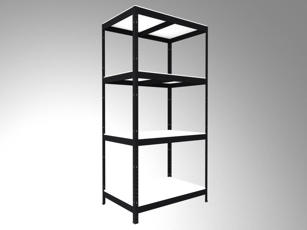 Regał metalowy Biedrax 60 x 75 x 180 cm, czarny, 4 półki białe laminowane 12mm, nośność 200 kg na półkę