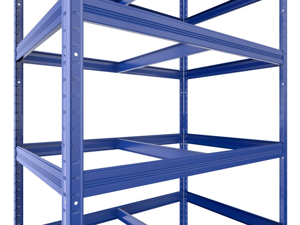 Regał metalowy Biedrax 45 x 75 x 180 cm, niebieski, 5 półek MDF, nośność 200 kg na półkę