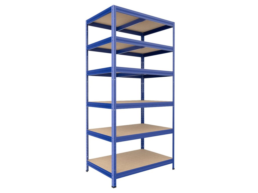 Regał metalowy Biedrax 45 x 90 x 210 cm, niebieski, 6 półek MDF, nośność 200 kg na półkę