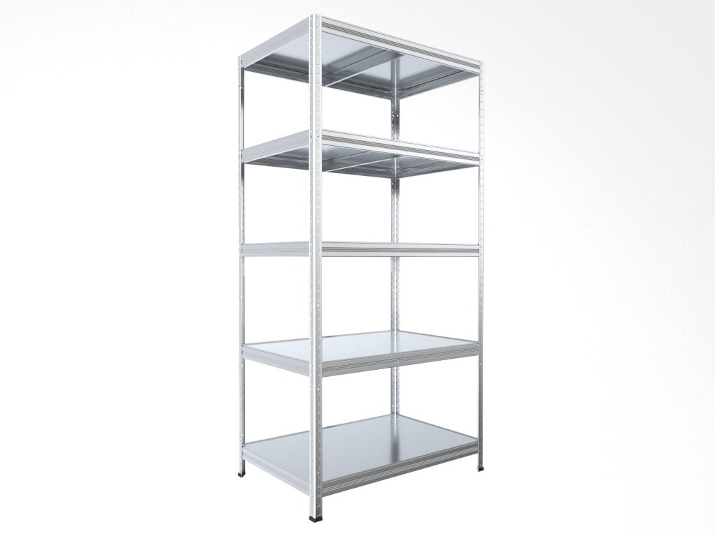 Regał metalowy z półkami z blachy ocynkowanej, które są trwałe, zmywalne i nadają się również do wilgotnych środowisk, takich jak piwnice, garaże czy szklarnie. Unikalny system bezśrubowy gwarantuje szybki montaż i wysoką stabilność. Półki są dodatkowo sprytnie osadzone w belkach, tworząc praktyczną 4-milimetrową krawędź, która zapobiega wypadaniu przechowywanych przedmiotów.