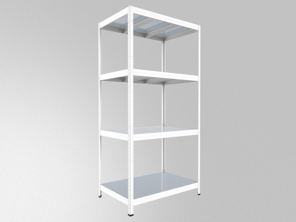 Regał metalowy z półkami z blachy ocynkowanej, które są trwałe, zmywalne i nadają się również do wilgotnych środowisk, takich jak piwnice, garaże czy szklarnie. Unikalny system bezśrubowy gwarantuje szybki montaż i wysoką stabilność. Półki są dodatkowo sprytnie osadzone w belkach, tworząc praktyczną 4-milimetrową krawędź, która zapobiega wypadaniu przechowywanych przedmiotów.