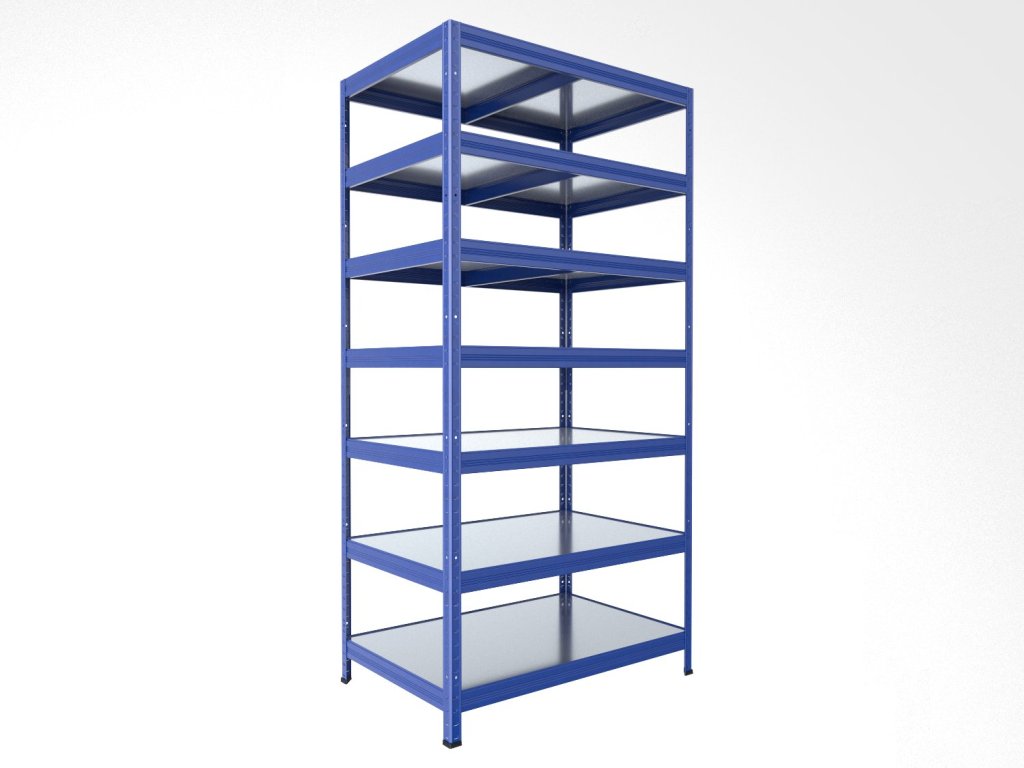 Regał metalowy Biedrax 35 x 60 x 240 cm, niebieski, 7 półek metalowych ocynk, nośność 150 kg na półkę