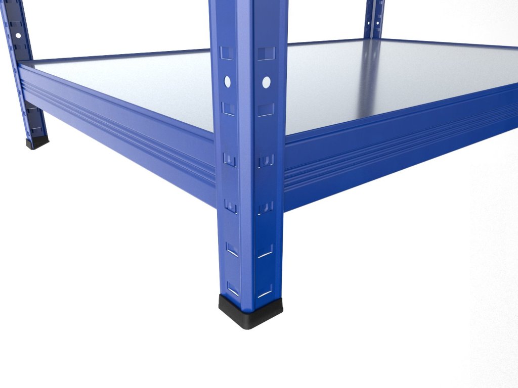Regał metalowy z półkami z blachy ocynkowanej, które są trwałe, zmywalne i nadają się również do wilgotnych środowisk, takich jak piwnice, garaże czy szklarnie. Unikalny system bezśrubowy gwarantuje szybki montaż i wysoką stabilność. Półki są dodatkowo sprytnie osadzone w belkach, tworząc praktyczną 4-milimetrową krawędź, która zapobiega wypadaniu przechowywanych przedmiotów.