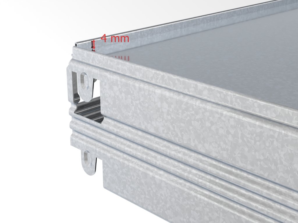 - Wysokość poziomu wynosi 56 mm (półka jest osadzona i tworzy 4 mm krawędź ochronną)