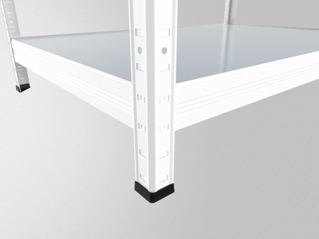 Regał metalowy z półkami z blachy ocynkowanej, które są trwałe, zmywalne i nadają się również do wilgotnych środowisk, takich jak piwnice, garaże czy szklarnie. Unikalny system bezśrubowy gwarantuje szybki montaż i wysoką stabilność. Półki są dodatkowo sprytnie osadzone w belkach, tworząc praktyczną 4-milimetrową krawędź, która zapobiega wypadaniu przechowywanych przedmiotów.