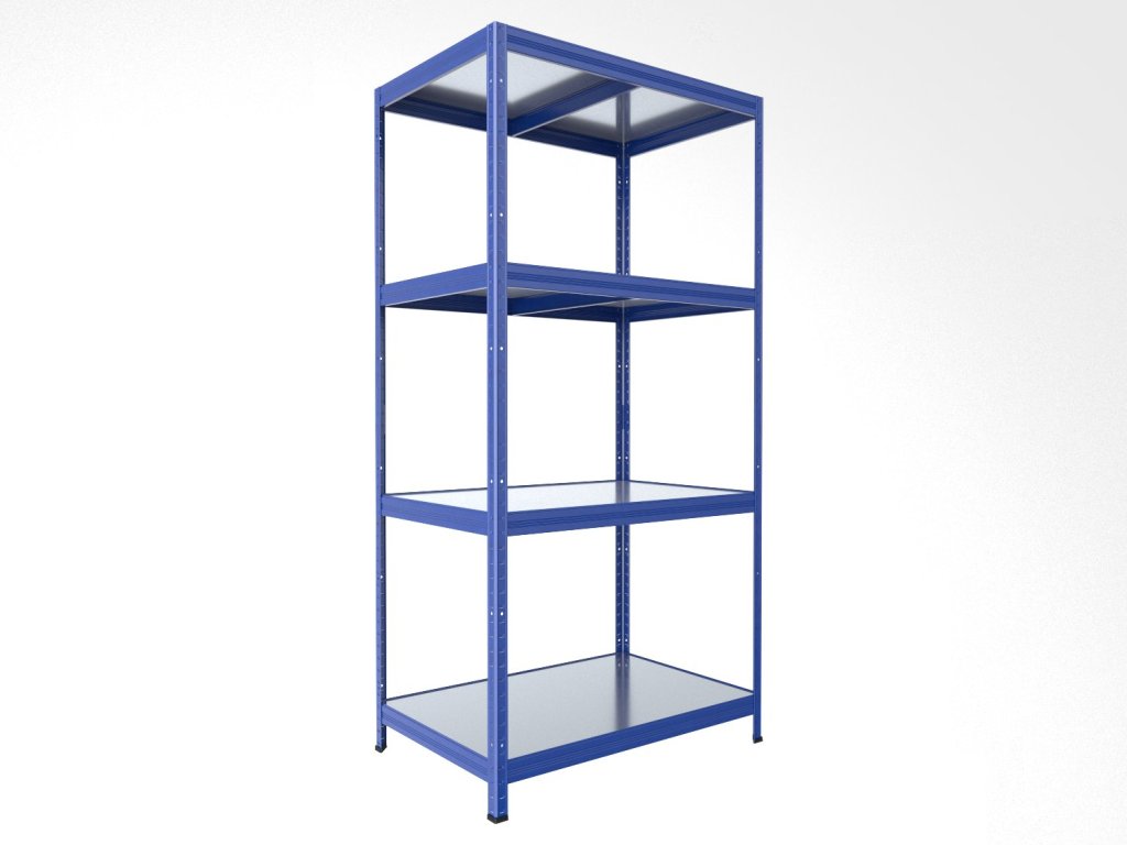 Regał metalowy Biedrax 60 x 75 x 180 cm, niebieski, 4 półki metalowe ocynk, nośność 150 kg na półkę