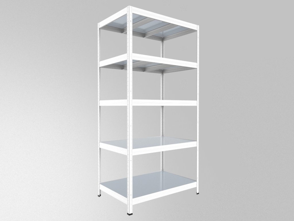 Regał metalowy Biedrax 60 x 90 x 210 cm, biały, 5 półek metalowych ocynk, nośność 150 kg na półkę