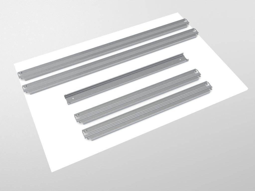 - Wysokość poziomu wynosi 64 mm (półka wystaje 7 mm ponad górną krawędź belek)