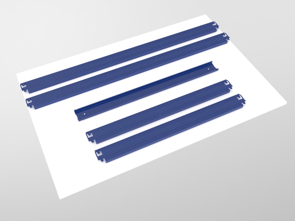 - Wysokość poziomu wynosi 64 mm (półka wystaje 7 mm ponad górną krawędź belek)