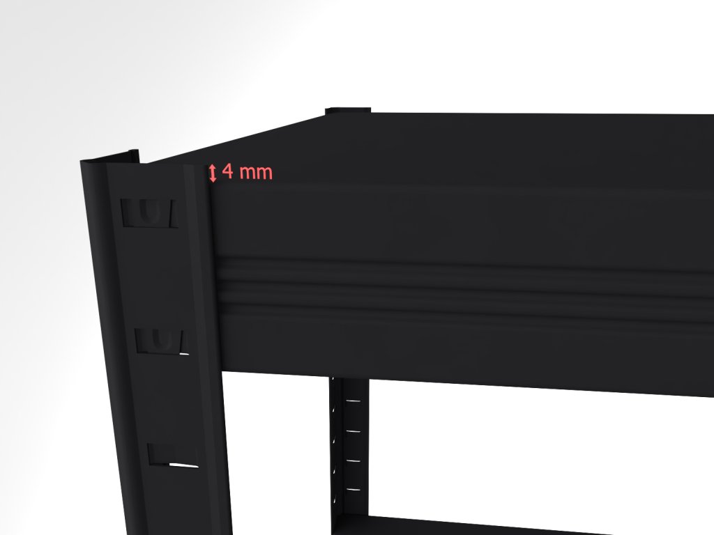 - Podane rozmiary regału są całkowitymi rozmiarami zewnętrznymi włącznie kątowników - rozmiar półki jest ok. 1 cm mniejszy