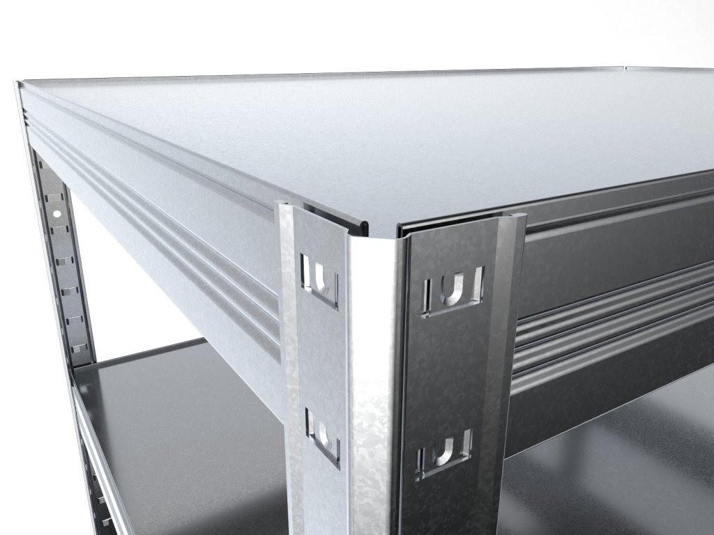 Regały te są zoptymalizowane pod względem głębokości do przechowywania standardowych segregatorów i pudeł archiwizacyjnych, które wygodnie mieszczą się na półkach. Regał na segregatory z półkami z blachy ocynkowanej, które są trwałe, zmywalne i nadają się również do wilgotnych środowisk, takich jak piwnice, garaże czy szklarnie. Unikalny system bezśrubowy gwarantuje szybki montaż i wysoką stabilność. Półki są dodatkowo sprytnie osadzone w belkach, tworząc praktyczną 4-milimetrową krawędź, która zapobiega wypadaniu przechowywanych przedmiotów.