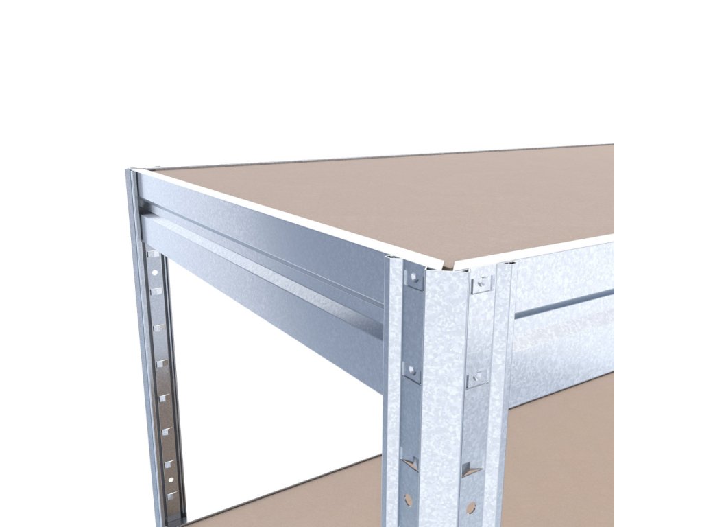 Duży regał półkowy z ekologicznymi półkami z płyt MDF, produkowanymi pod wysokim ciśnieniem bez dodatku klejów. System bezśrubowy (wciskany) zapewnia wyjątkową stabilność oraz błyskawiczny montaż – belki wystarczy wsunąć w słupki i zabezpieczyć lekkim uderzeniem. Brak śrub gwarantuje maksymalną sztywność konstrukcji. Uwaga: Półki MDF nadają się wyłącznie do suchych pomieszczeń. Stabilny i przestronny regał, idealny do przechowywania dużych i wysokich ładunków, wzmocnienia pod każdą półką zapewniają sztywność konstrukcji i zapobiegają ich uginaniu się.