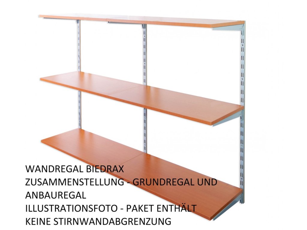Regały ścienne dodatkowe składają się z jednego profilu (listwy na ścianę). O ile chcą mieć państwo zestaw regałów ściennych obok siebie, trzeba wybrać jeden regał podstawowy i do niego dalej regały dodatkowe.