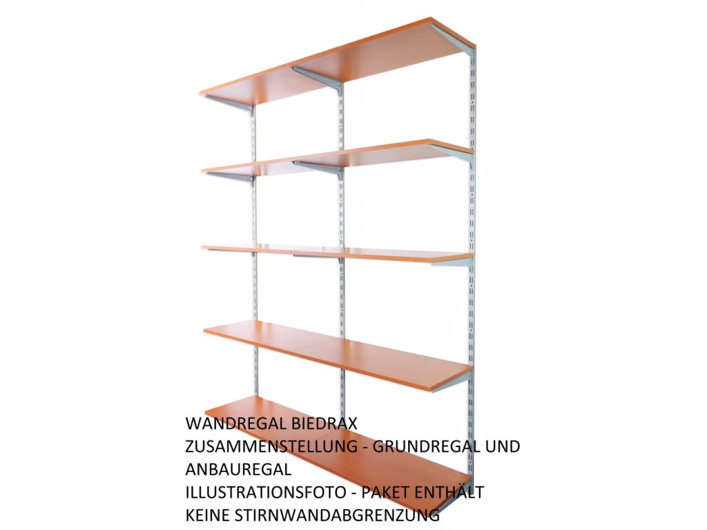Regały ścienne dodatkowe składają się z jednego profilu (listwy na ścianę). O ile chcą mieć państwo zestaw regałów ściennych obok siebie, trzeba wybrać jeden regał podstawowy i do niego dalej regały dodatkowe.