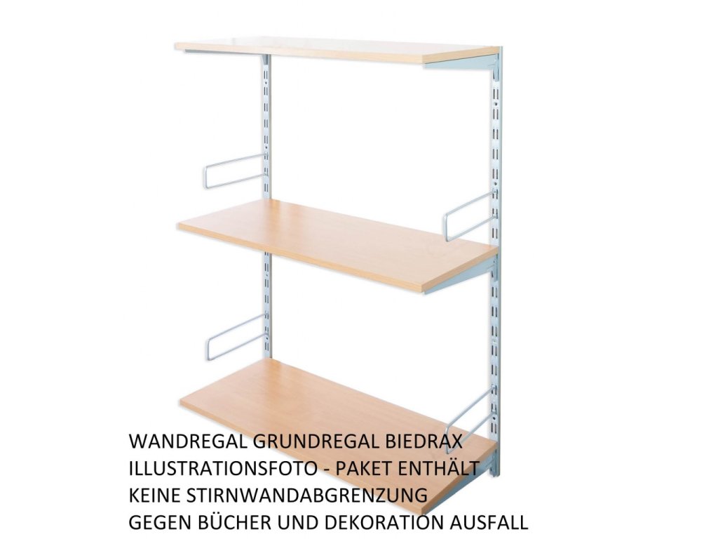 - Zawartość paczki regał podstawowy: 2 metalowe listwy ścienne, metalowe nośniki pod półkę, półka z płyty wiórowej laminowana 18 mm, śrubki dla przymocowania półek do nośników