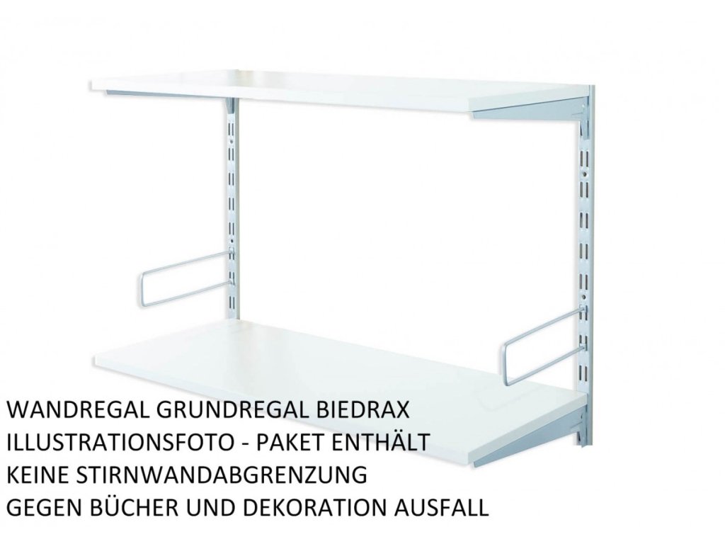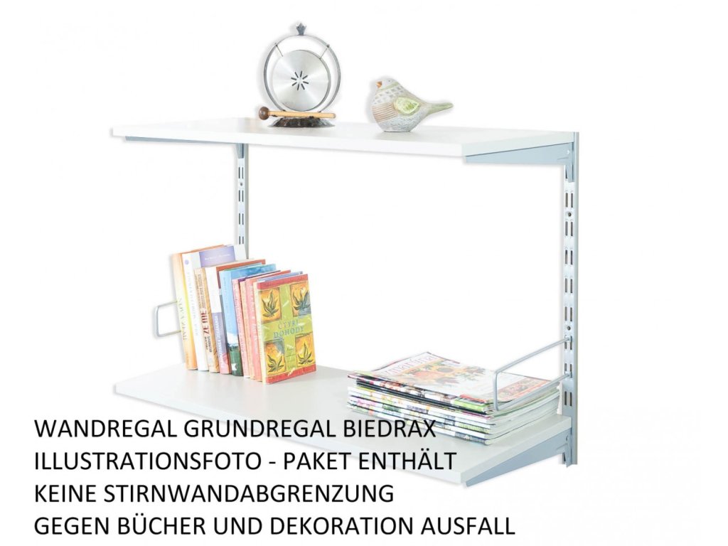 - Zawartość paczki regał podstawowy: 2 metalowe listwy ścienne, metalowe nośniki pod półkę, półka z płyty wiórowej laminowana 18 mm, śrubki dla przymocowania półek do nośników