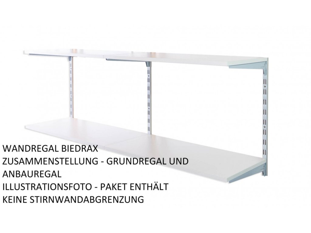 Regały ścienne dodatkowe składają się z jednego profilu (listwy na ścianę). O ile chcą mieć państwo zestaw regałów ściennych obok siebie, trzeba wybrać jeden regał podstawowy i do niego dalej regały dodatkowe.